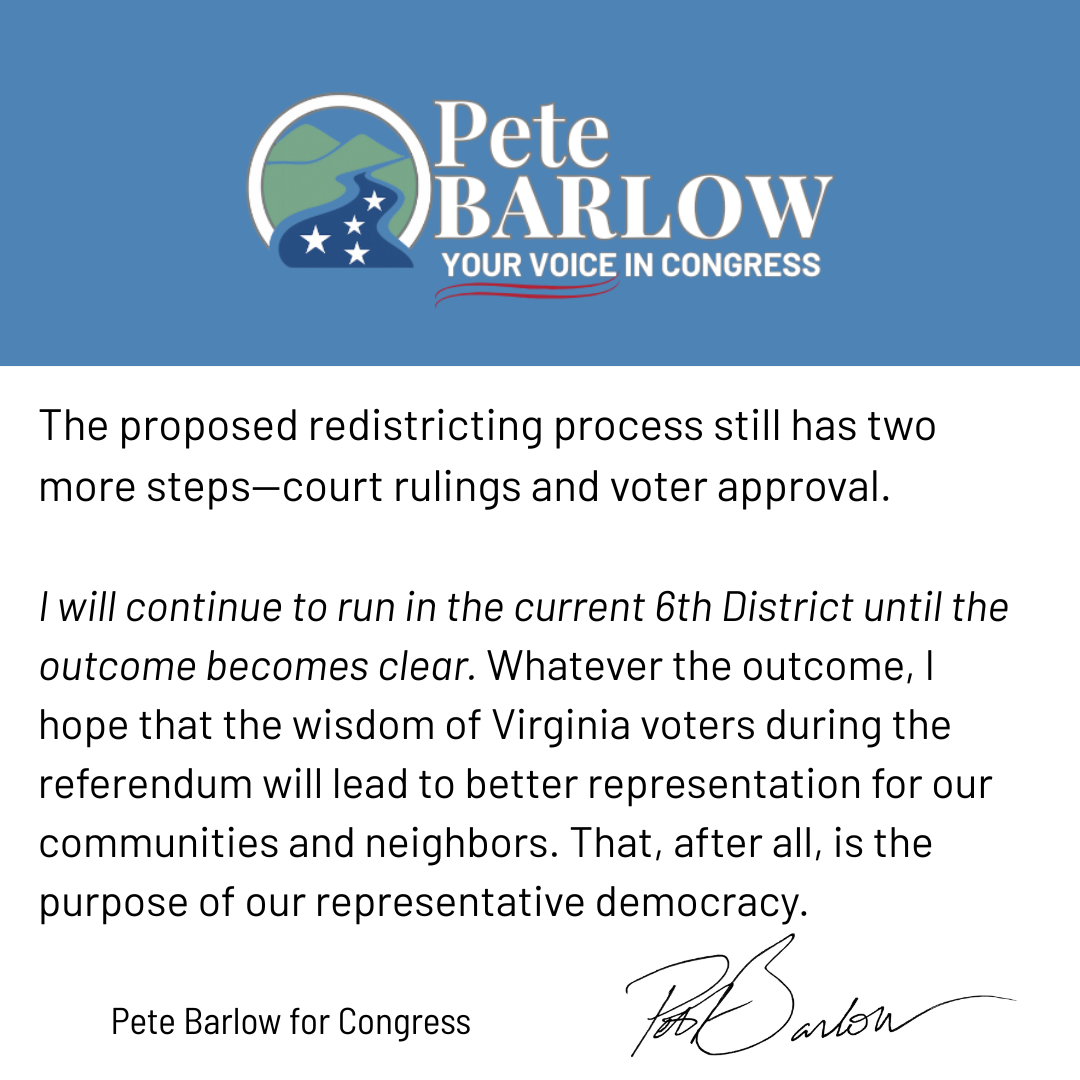 Pete was also interviewed about why he believes keeping CD6 intact is essential. You can read it here https://www.dnronline.com/news/elections/people-arent-static-barlow-says-democrats-can-win-6th-congressional-district-without-redrawing-map/article_8063c816-8898-5718-b9c4-fd22daacc9ce.html